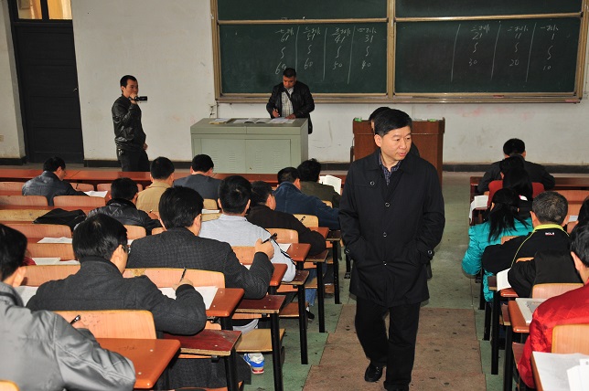 考试试题涉及多部近年新颁布的法律法规。考试中,参考者仔细审题,认真作答。校党委副书记、副校长龚卫明以及益阳市法制办相关负责人现场进行了巡考。