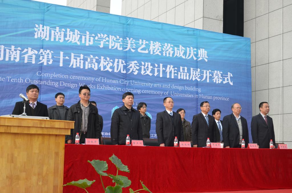 湖南工艺美术职业技术学院副校长陈鸿俊教授代表湖南兄弟院校向“美艺楼”落成表示祝贺。他表示,城院美艺楼的落成,标志着美艺院进入了一个全新的发展阶段。他代表兄弟院校将一如既往的关注与支持城院美艺学院的发展。