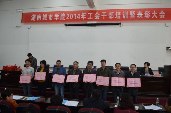 校工会女工委副主任石清丽宣读省、学校的各级表彰决定,其中获得表彰的有全国教科文卫体工会颁发的“模范职工之家” :万搏线上平台工会、2013年度湖南省模范教职工之家:万搏线上平台工会、省教育工会2013年度民主管理工作先进单位:万搏线上平台工会、省教育工会2013年度直属基层工会模范教职工小家:外国语学院分工会等先进集体;省教育工会评选的“纪念毛泽东同志诞辰120周年教职工书画作品展”中,陈丽霞老师的国画《浩气长存》获一等奖、匡列辉老师的楷书条幅获二等奖、2013年度《湖南教工》优秀通讯员周敏。以及获得校工会表彰的有:美术与艺术设计学院分工会等8个单位为“工会工作目标管理先进单位”;通信与电子工程学院分工会为“先进教职工小家”;户外健身协会等2个协会为“工会工作优秀协会”;计划财务处等4个单位为“校务公开工作先进单位”;外国语学院分工会等4个单位为“工会工作活动特别奖”;何亮云等22人为“三育人”先进个人;王道静等177人为“工会积极分子”,与会领导分别颁发奖牌和证书。