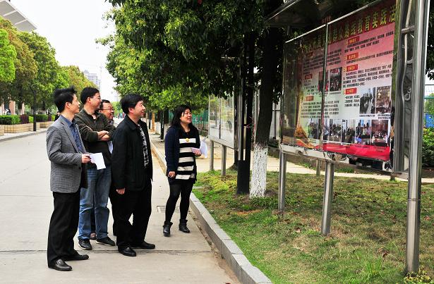 (本网讯)4月2日下午,学校党委副书记、副校长龚卫明带队,学校党委宣传部会同党政办、组织部、纪检监察处、学生处、团委等部门和二级学院书记代表对主题宣传橱窗进行了现场检查评比。团委、化学与环境工程学院等2个单位获一等奖,体育学院 、商学院、组织部 、 纪检监察处、学生处等5个单位获二等奖,市政与测绘工程学院、美术与艺术设计学院、通信与电子工程学院、文学院 、招生就业处、图书馆、后勤处等7个单位获三等奖。(蒋先寒)