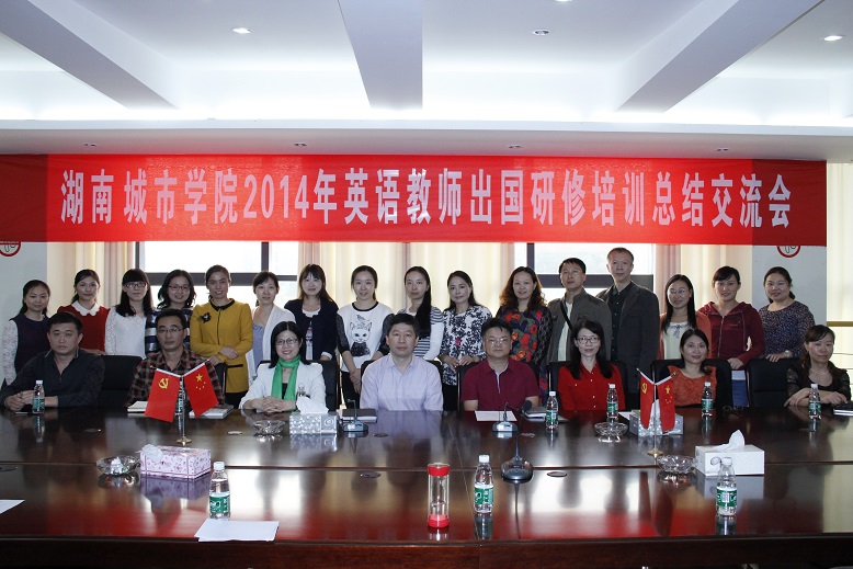 (本网讯)1014日下午,2014年度英语教师出国研修培训总结交流会在办公楼一会议室举行。党委副书记、副校长龚卫明,副校长汤放华以及人事处、教务处、国际交流处、外国语学院等相关部门负责人和出国研修培训的全体教师参加了会议。会议由汤放华主持。