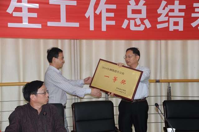 会上,招生就业处副处长郭太平作了学校2014年招生工作总结汇报,文瑞明宣读了《关于表彰万搏线上平台2014年网络招生宣传先进集体的决定》、《关于万搏线上平台2014年新生报到率奖励的决定》。
