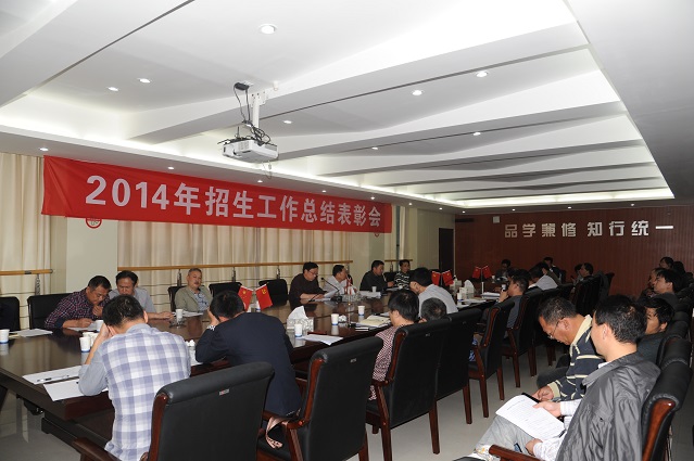下午,学校2014年招生工作总结表彰会在办公楼一会议室举行。正校级督导范志超及招生工作领导小组其他成员、各学院院长、总支书记和副书记参加了会议。会议由招生就业处处长文瑞明主持。