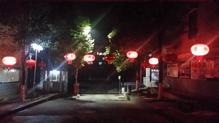 上午,宣传部布置完成了节日校园美化工作。校园内、家属区,大红的灯笼,闪烁的彩灯,红红的横幅,把整个校园区、家属区装饰得“年味儿十足”。