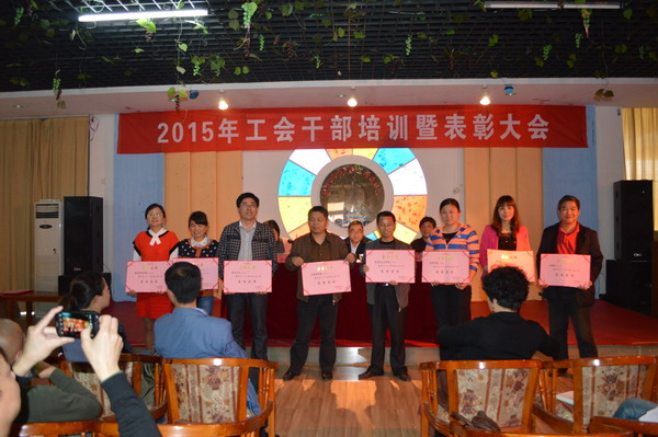 工会女工委副主任石清丽就提案工作作了培训,并宣读了省、市、学校的各级表彰决定:化学与环境工程学院分工会获得省教育工会2014年度直属基层工会“模范教职工小家”荣誉称号;体育学院李志宏荣获2014年度益阳市芙蓉百岗明星;城市管理学院分工会等8个单位为“工会工作先进集体”;文学院分工会等4个单位为“特色工会活动”;城市管理学院学生工作办公室等5个单位为“巾帼建功示范岗”;党政办公室等6个单位为“民主管理工作先进单位”;美术与艺术设计学院等4个单位为“帮扶工作先进单位”;周拥军等177人为“工会工作积极分子”;唐葭等10人为“巾帼建功标兵”;管红兵等3人为“优秀女职工工作者”;黄金莲等9人为“孝顺儿媳”。