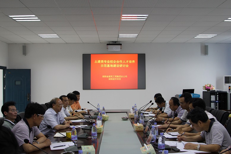 (本网讯)企业招聘过程中衡量人才的标准是什么?理论课与实践课的比重应如何配备? 6 17 下午,应学校邀请,湖南省建工集团技术研发部部长 君放、人力资源部副部长谢洪海一行7人围绕土建类人才培养方案与我校土木工程学院教师进行了座谈。党委副书记、副校长孟昭武以及教务处、土木工程学院相关负责人、教师代表参加座谈会。