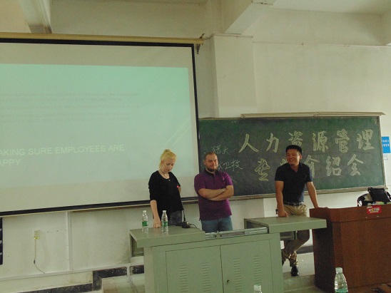 (本网讯)有别于往年由专业教研室主任或指定一名专任教师主讲的新生专业教育模式,商学院人力资源管理专业教研室精心策划,在2015级新生专业教育中独辟蹊径,创新形式,引进外教现场互动交流,并利用VCR和校友现身说教,让新生扩展视野,明确目标,树立信心,受到新生好评。