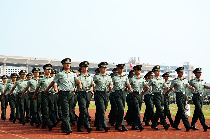 随后,校长李建奇在武装部部长贺正宜和国防科技大学指挥学院副指导员李旺军的陪同下,检阅了由2015级参训新生组成的方队。