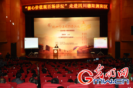 ,由光明日报社、中国人民大学、中国伦理学会共同主办,由光明网、中共德阳市旌阳区委、德阳市旌阳区人民政府承办的“核心价值观百场讲坛”第三十三场活动在四川德阳旌阳区举行。我校李建华教授应邀为当地干部群众代表作了题为《让道德滋养法治精神》的专题讲座。光明网对讲座进行了网络直播,参与观看和讨论的网民达300万人。