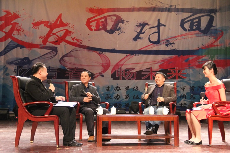 (本网讯) 1122日晚,文学院特色活动“校友面对面”第三期在音乐厅举行。本期活动邀请到两位原中文系93届优秀校友,分别是乐享汇科技有限公司董事长兼CEO、移动互联O2O新商业模式创始人、践行者何劭强,以及先后任安化县委常委、组织部长、常务副县长、县委副书记,现任益阳市规划局党委书记、局长的李晓跃。活动主题围绕“忆青春畅未来”展开,回忆往昔峥嵘岁月,畅想未来美好理想。