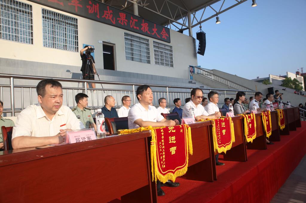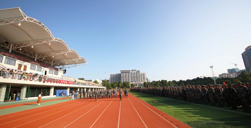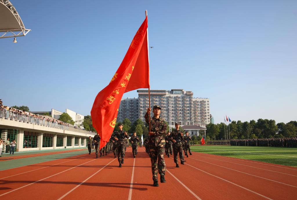 袁志成作了军训总结报告。他表示,在此次军训中,各级领导高度重视、悉心指导,辅导员和教官工作积极主动、高度负责,全体参训同学文明上进,不怕苦、不怕累,眼神更加坚毅了,纪律更加严明了,作风更加硬朗了,精气神更加足了。希望全体参训学生把在军训中形成的雷厉风行、艰苦奋斗、积极进取、团结合作的良好作风融入到今后的学习、工作和生活中,力争成为志存高远、思想过硬、专业扎实、品德高尚的合格大学生和爱党、爱国、爱人民、爱校、爱家的新时代好青年!