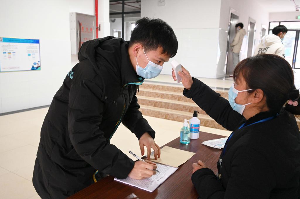 演练人员模拟了学生入校提前准备好“三码一单”(电子健康码、行程卡绿码、新冠疫苗接种码和48小时内核酸检测阴性报告单)、严格按照“四必”(口罩必戴、体温必测、健康码和行程卡必扫、学生返校申请与核酸检测结果必验)工作要求等有序进入校园的情形。