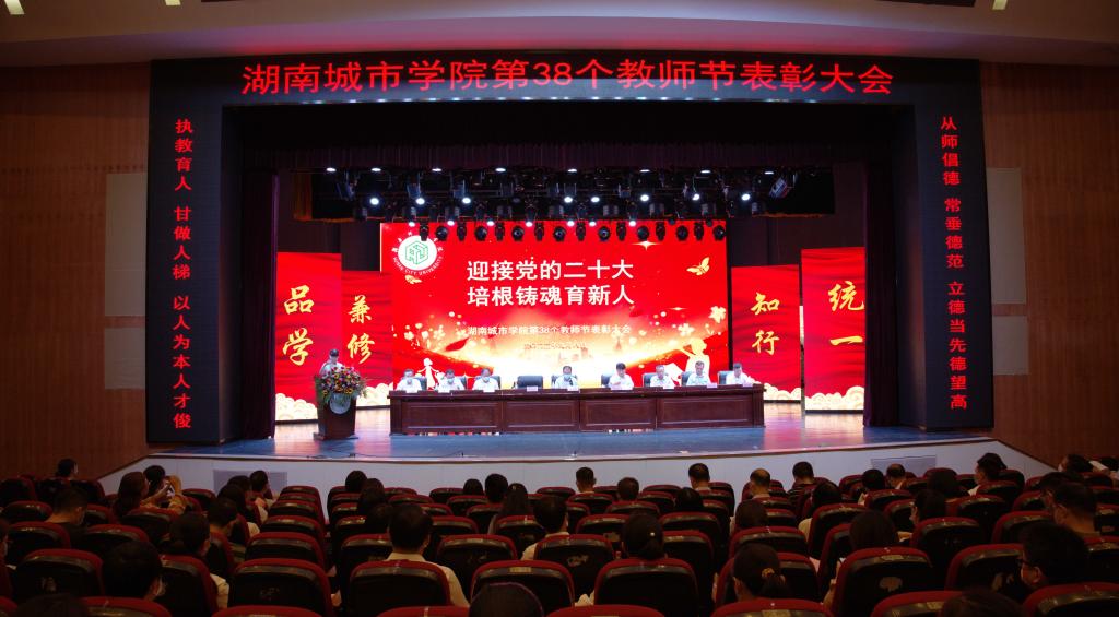 本网讯(通讯员 雷欢)三尺讲台,三寸舌,三寸笔,三千桃李;十年树木,十载风,十载雨,十万栋梁。2022年9月8日下午,我校庆祝第38个教师节暨表彰大会在音乐厅举行。全体校领导、机关处室负责人、二级学院领导及受表彰对象、教师代表等200多人参加了大会。大会由校长汤放华主持。