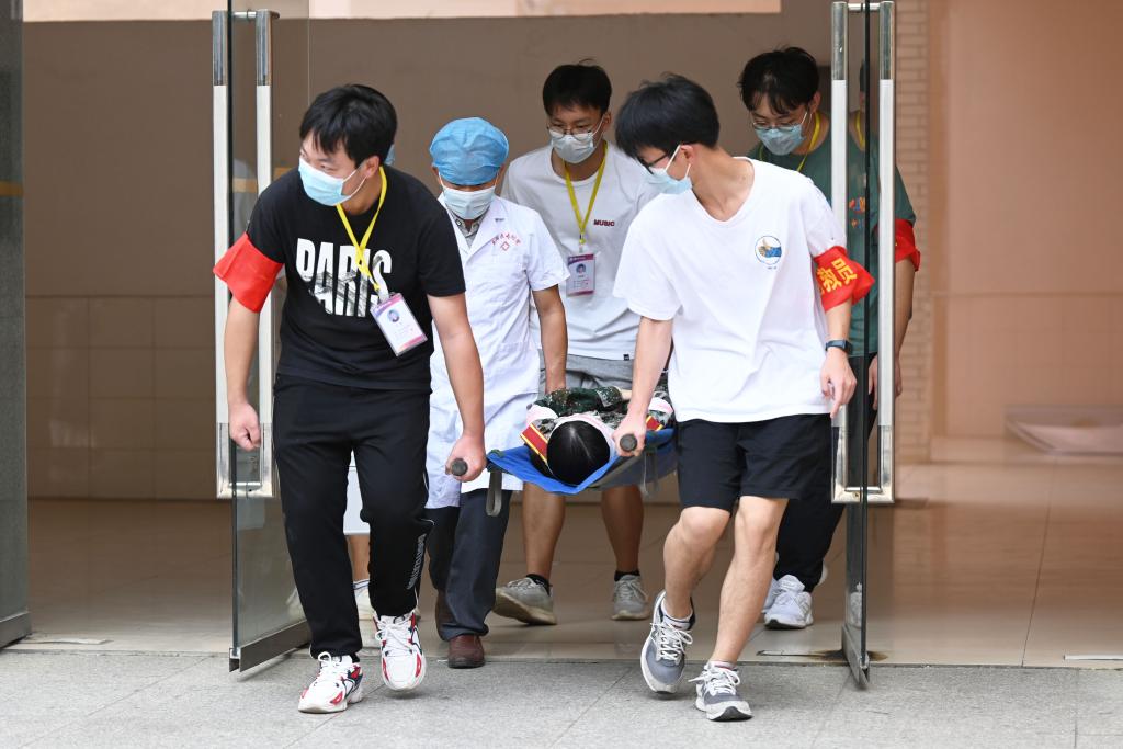 9月20日,万搏线上平台参加消防演练的同学们用湿毛巾捂住口鼻,有序撤离。