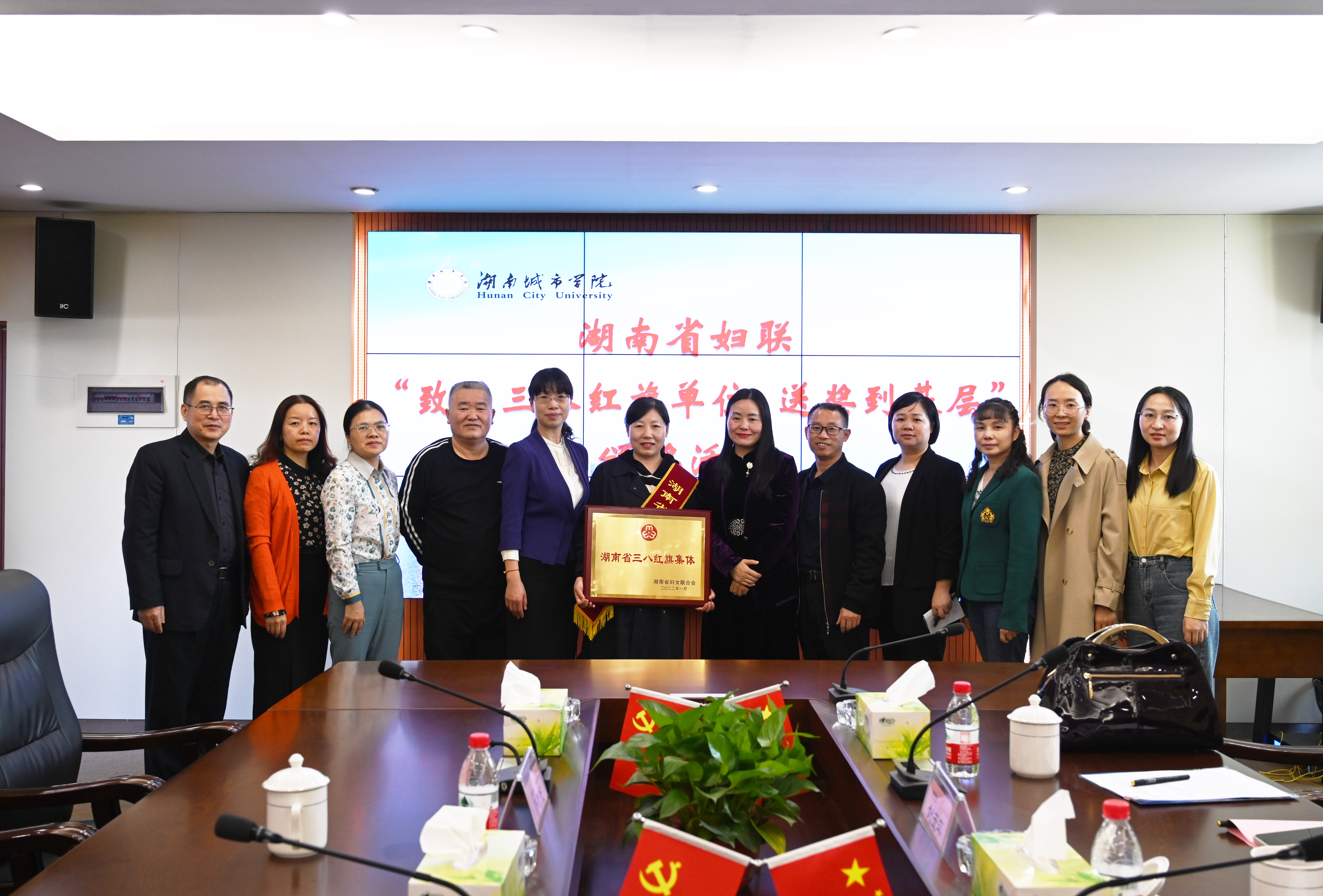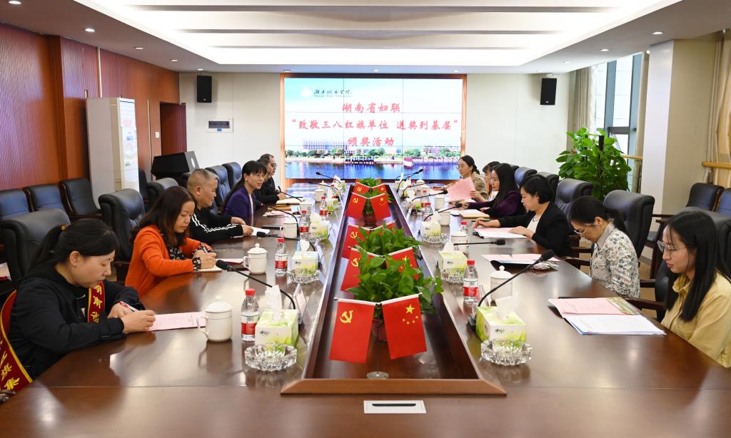 本网讯(记者/文彦波 通讯员/王锋娟)11月2日下午,省妇联副主席周荣一行来到万搏线上平台开展“致敬三八红旗手·送奖到基层”活动,为荣获湖南省“三八红旗集体”荣誉的马克思主义基本原理概论教研室颁奖。学校党委副书记何旭娟,校工会、马克思主义学院等单位相关负责人出席授奖仪式。