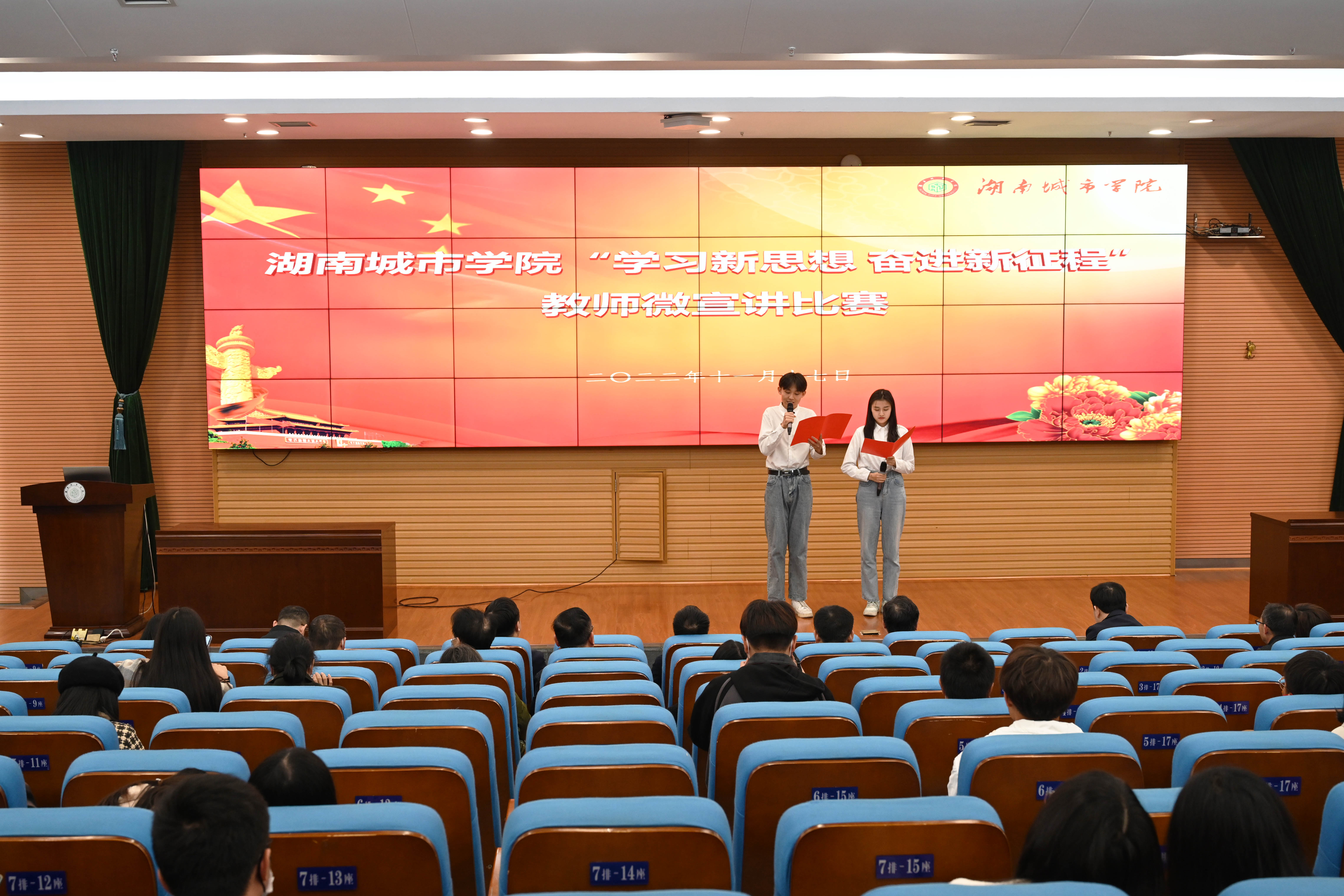 本网讯(通讯员 周文娟)“党的二十大开启了以中国式现代化全面推进中华民族伟大复兴的新征程,中国式的现代化需要现代化的人才做支撑……” 11月17日,万搏线上平台“学习新思想,奋进新征程”教师微宣讲比赛在图书馆报告厅举行。来自各二级单位的18位参赛选手们围绕党的二十大报告,从党的二十大的历史地位与重大意义、党的二十大精神等方面,用“小故事”诠释“大道理”,将党的创新理论送到师生的心坎上。党委副书记何旭娟,副校长袁志成,党委委员、组织部部长吕贤军出席。