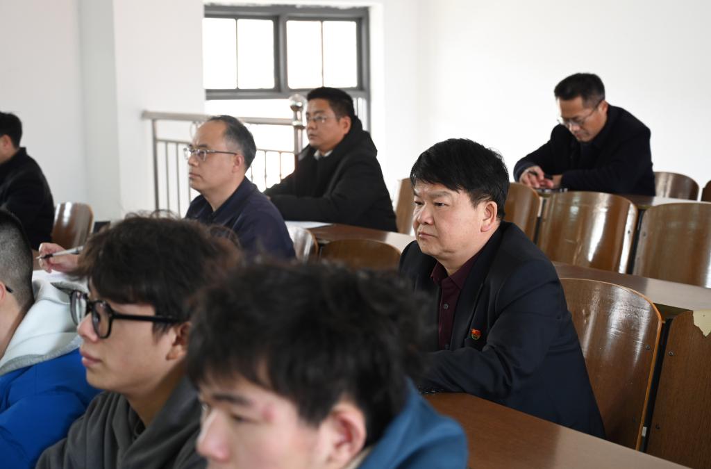 2月27日下午,汤放华深入课堂,随机听取了马克思主义学院匡辉老师的“毛泽东思想和中国特色社会主义理论体系概论”课程和李佳宁老师的“马克思主义基本原理”课程。课后,汤放华与两位老师进行了充分交流,对其认真的教学态度、饱满的工作热情和良好的教学水平给予了充分肯定,同时结合自己多年的授课经历,就激发学生学习热情、创新教学方式方法、推动课堂教学改革等方面进行了探讨。随后,汤放华一行前往理学院进行实地走访检查。