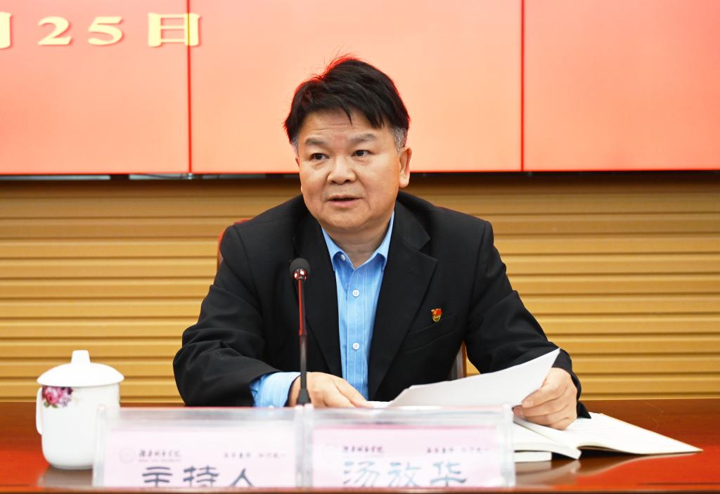 刘望以《牢记总书记嘱托 高标准落实高校党委领导下的校长负责制》为题,从高校党委领导下的校长负责制的科学内涵、高校党委领导下的校长负责制运行中存在的问题、贯彻落实党委领导下的校长负责制的几点体会等三个方面作了深入阐释。刘望表示,党委领导下的校长负责制是党对高校领导的根本制度,要把落实党委领导下的校长负责制作为一种信念融入思想,作为一种责任融入工作,作为一种动力融入发展,让事业发展的步伐更加铿锵有力,为建设现代化新湖南贡献高等教育更大力量。