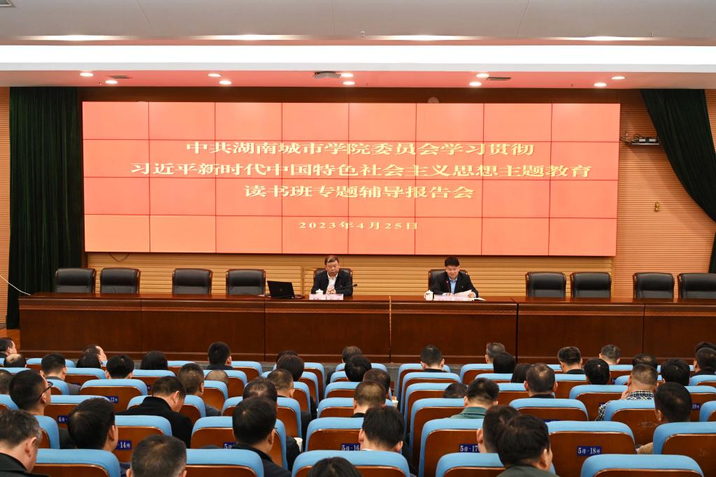 本网讯(记者 文彦波)4月25日晚,万搏线上平台学习贯彻习近平新时代中国特色社会主义思想主题教育读书班在图书馆报告厅开班。湖南工业大学党委书记刘望应邀作专题辅导报告。学校党委书记汤放华主持报告会并作动员讲话。学校副处级以上领导干部参加读书班。