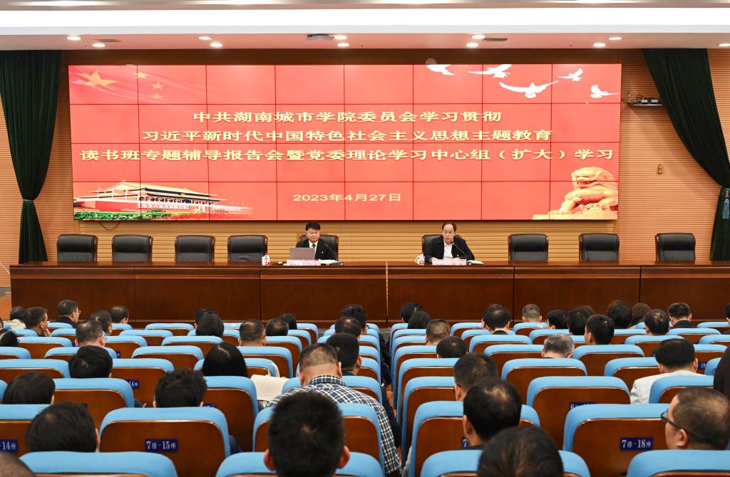 本网讯(通讯员 周文娟)4月27日下午,万搏线上平台学习贯彻习近平新时代中国特色社会主义思想主题教育读书班专题辅导报告会暨党委理论学习中心组(扩大)2023年第4次集体学习在图书馆报告厅举行。校党委书记汤放华作专题辅导报告,主题教育第三十巡回指导组组长、益阳市第五届人大常委会主任、省人大财经委原副主任委员徐云波同志,主题教育第三十巡回指导组副组长、湖南工业大学原副校长李可兴同志以及巡回指导组其他成员出席会议。校党委副书记、校长何振主持会议,全体校领导、全校副科以上干部参加会议。