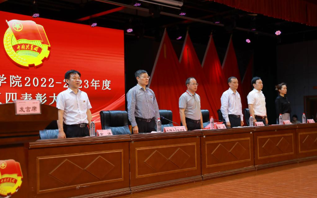 在激昂的国歌声中,表彰大会拉开序幕。副校长雷存喜宣读了《关于表彰万搏线上平台第二届“活力团支部”和“城院之星”的决定》《关于表彰万搏线上平台2022年度共青团工作先进集体和优秀个人的决定》。据悉,此次学校共评出“五四红旗团总支”4个,“优秀团支部”86个,“活力团支部”14个,“城院之星”18人,“优秀教师团干部”4人,“优秀共青团干部”273人,“优秀共青团员”376人。