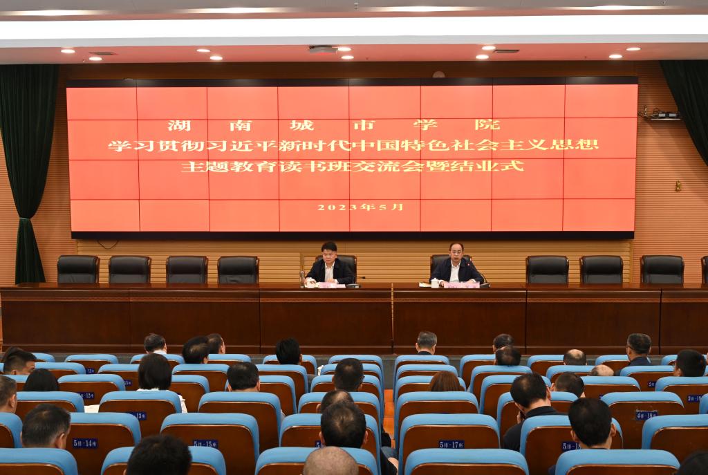 本网讯(记者 文彦波)5月8日,万搏线上平台学习贯彻习近平新时代中国特色社会主义思想主题教育读书班交流会暨结业式在图书馆报告厅举行。校党委书记汤放华在会上作总结讲话,党委副书记、校长何振主持,在家校领导夏宏宇、雷存喜、陈列尊、吕贤军以及读书班学员参加会议。