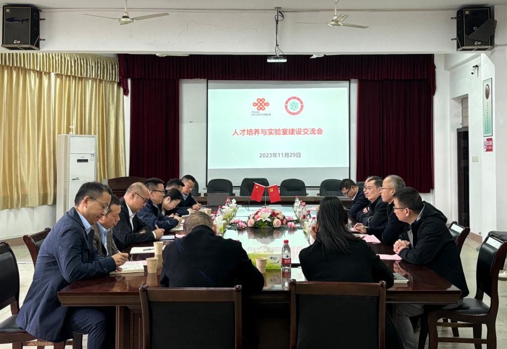 本网讯(通讯员 姚颖 邹翌雯)11月29日,湖南联通公司副总经理、联通(湖南)产业互联网有限公司党委书记、总经理吴华率队来校考察人才培养与实验室建设,双方在电信楼313会议室举行座谈会。副校长雷存喜出席会议并致欢迎辞。