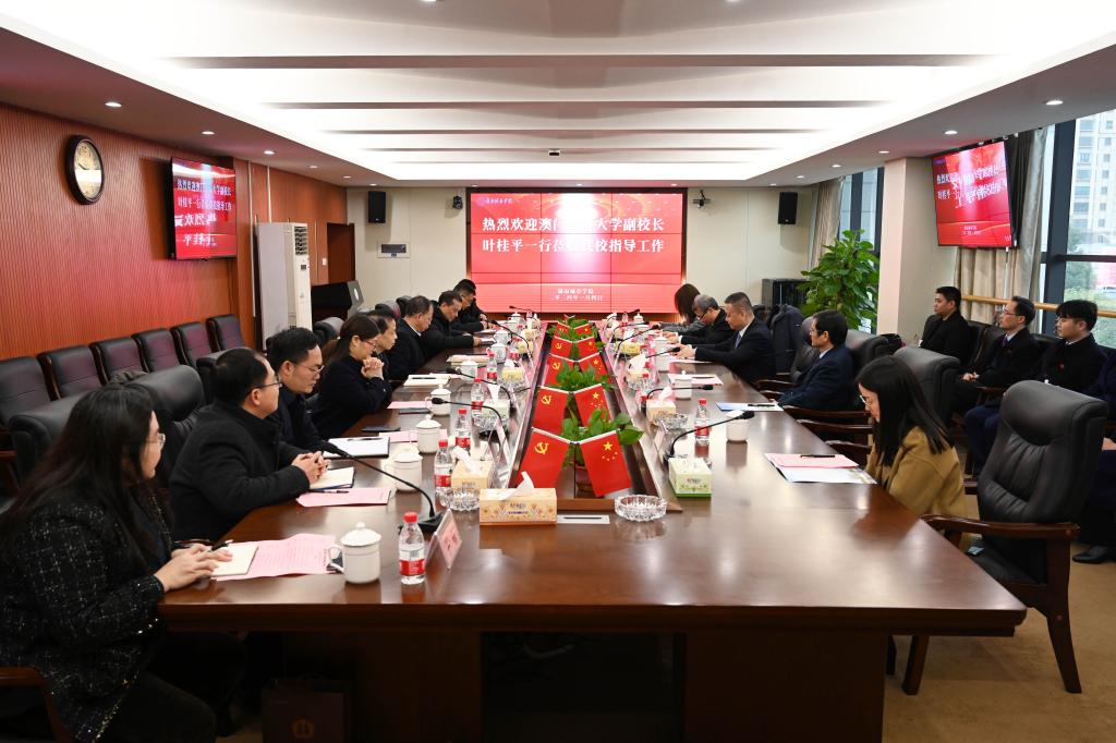 本网讯(通讯员 杜林远)新年伊始,1月4日,澳门城市大学副校长叶桂平率代表团访问万搏线上平台,随团来访的有省教育考试院党委书记吴德平、省教育厅港澳台交流办公室主任周芳友、湖南秦希燕联合律师事务所主任秦希燕、澳门城市大学葡语国家研究院助理教授陈红和社会经济发展研究中心研究员刘思萱等。我校党委书记汤放华、校长何振、副校长雷存喜接待了代表团一行,双方在办公楼一会议室举行见面交流会。