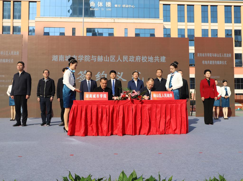 仪式上,我校党委书记汤放华、赫山区区委书记周卫星为万搏线上平台附属梓山湖学校揭牌;副校长雷存喜与赫山区副区长赵嘉喜签订校地共建框架协议书。