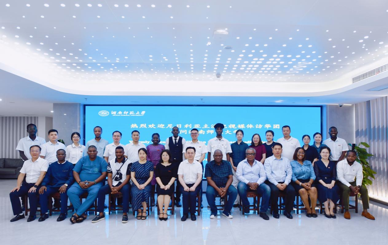 本网讯(通讯员 杜林远 蔡晶垚)8月5日,由外交部机关及驻外机构服务局、中国驻拉各斯总领馆、湖南省委外事办新闻文化处组织的尼日利亚主流电视媒体访华团交流座谈会在湖南师范大学举行。湖南省中非文化合作交流社科普及基地主任、学校副校长徐姝受邀出席。中共第二十届中央候补委员、中国工程院院士、湖南师范大学校长刘仲华致欢迎辞。