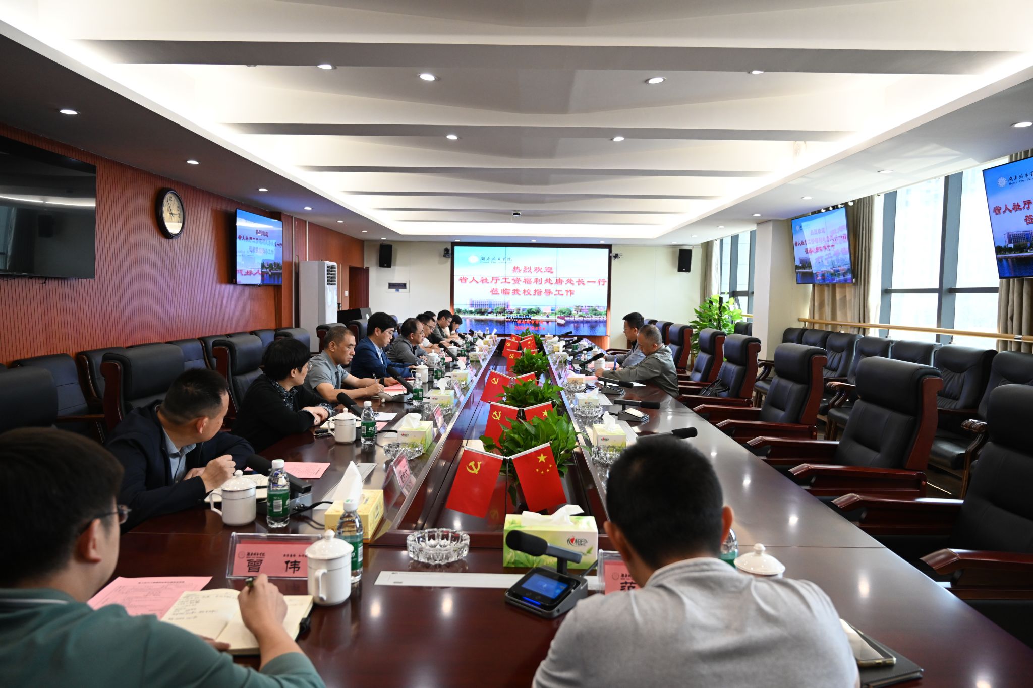 本网讯(通讯员 范吉文)10月9日下午,湖南省人社厅工资福利处处长唐西游,副处长蒋志勇来我校考察,就教职工工资收入分配工作情况进行交流座谈。校长何振,党委副书记袁志成出席,学校人事处、计划财务处、科研处、教务处相关负责人参加。座谈会由袁志成主持。
