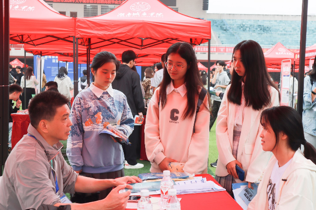 本网讯(通讯员 朱怡 冷紫怡)10月17日,湖南省高校毕业生就业区域性行业性常设市场(益阳片区)暨万搏线上平台2025届毕业生秋季综合双选会在东田径场举行。校长何振、党委副书记袁志成来到现场指导就业工作。