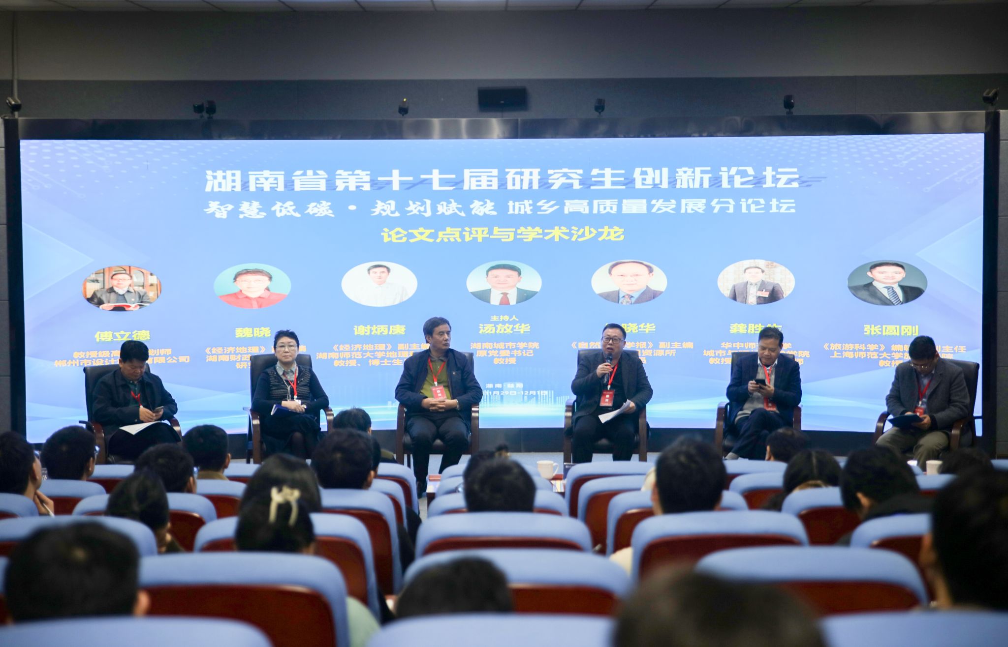 本次论坛邀请了华中师范大学龚胜生教授、湖南财政经济学院魏晓研究员、上海师范大学张圆刚教授、郴州市设计集团有限公司傅立德总经理、万搏线上平台古杰博士,围绕“智慧低碳·规划赋能城乡高质量发展”主题,带来了5场内容丰富的学术报告。专家们的报告不仅内容前沿、覆盖面广,而且深入浅出,为研究生们后续开展研究提供了更为宽广的视角。