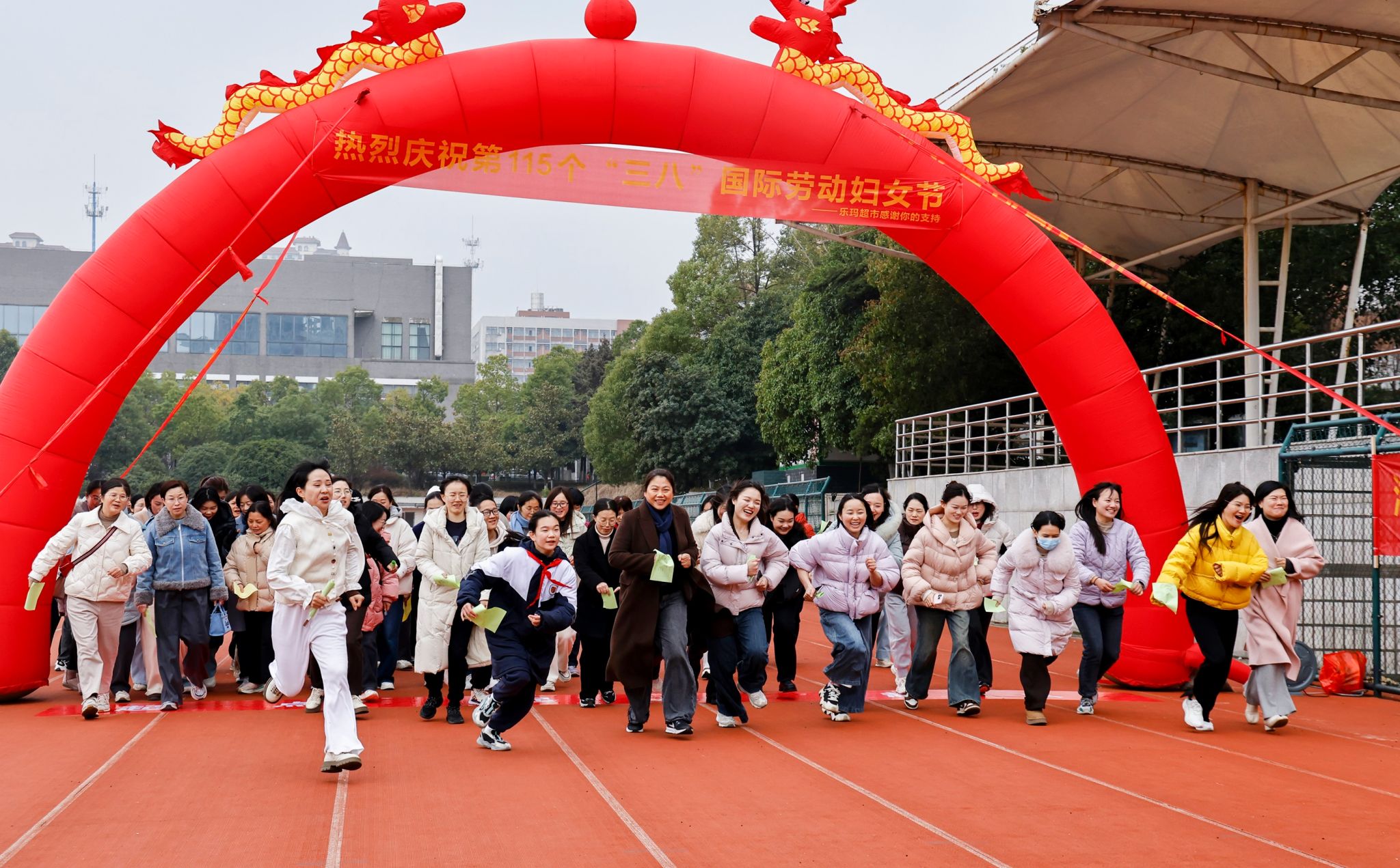 本网讯(通讯员 周敏)为庆祝第115个“三八”国际劳动妇女节,进一步丰富女教职工的文化生活,加强对女性关爱,提高女教职工身体素质,激发女教职工爱岗敬业、锐意进取的工作热情,近日,学校举行“巾帼绽芳华 汇聚她力量”庆“三八”国际劳动妇女节校园慢跑活动。600多名女教职工参加,副校长徐姝、孙倩出席活动。