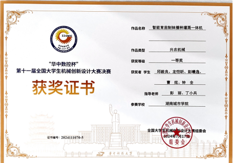 (通讯员 彭丽)7月17日,第十一届全国大学生机械创新设计大赛决赛在华中科技大学圆满闭幕。由彭丽和丁小兵老师指导,邱毅良、龙恺昕、彭曦逸、曹炫、钟全五位同学完成的万搏线上平台参赛作品《智能育苗制钵播种灌溉一体机》,以湖南省第一名的好成绩入围全国总决赛,经过决赛的两轮精彩比拼,不负众望斩获最高奖项:全国一等奖,实现万搏线上平台在该赛事上历史性的突破。